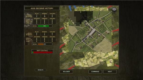 With Close Combat: Gateway to Caen you can play at the strategic and tactical level, putting yourself in the boots of both the generals and the platoon commanders. You can move or combine your battlegroups on the strategic level and decide the outcome of battles on the tactical level. You will command squads in close combat situations, using small arms, mortars, machine guns, armored cars, and tanks to triumph against the enemy. You command artillery and mortar barrages and even air strikes. You will get to know individual solders, platoons, battalions, and the larger brigades and battle groups which they comprise.