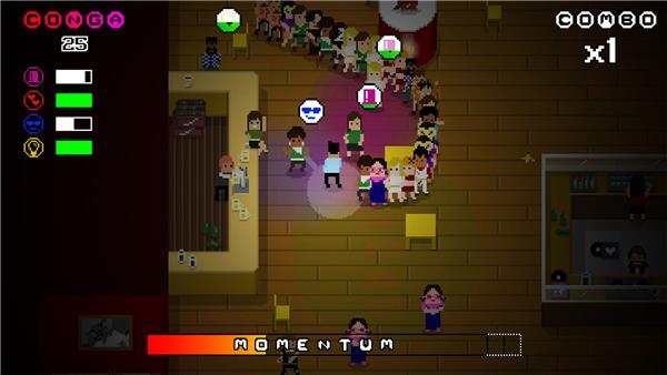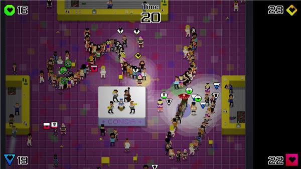 Playing Conga Master couldn't be easier: guide your dancer across the floor, dancing round people to add them to your line as you go. Longer congas let you add people faster, but watch out for pigs stinking up your line! Play solo or, even better, drag three friends onto the dance floor for some local multiplayer conga madness and see who'll become the true Conga Master!