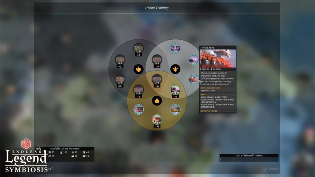 The Mykara originate from a unique stem city and overgrow points of interest to fuel their economy. While they cannot settle new land, they can turn conquered enemy cities into ghost towns from which they get bonus resources. After a few turns, their symbiosis with the conquered town allow them to gain bonus traits…