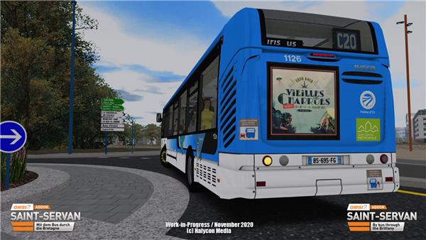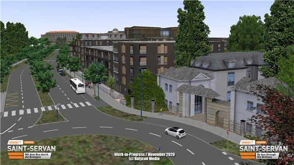 The OMSI 2-AddOn Saint-Servan presents 8 lines of this large network connecting the center of Saint-Servan with the districts and villages in the north of the metropolis (such as Salérin, Monfort-sur-Rhé, Le Roc Saint-André, etc.), passing through historic landscapes, large residential areas of the 1960s, eco-districts of the 2000s, European business districts, but also hamlets, nature reserves, coastal roads and small Breton villages.